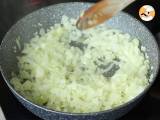 Einen Schuss Olivenöl in eine Pfanne geben und die Zwiebeln anbraten.