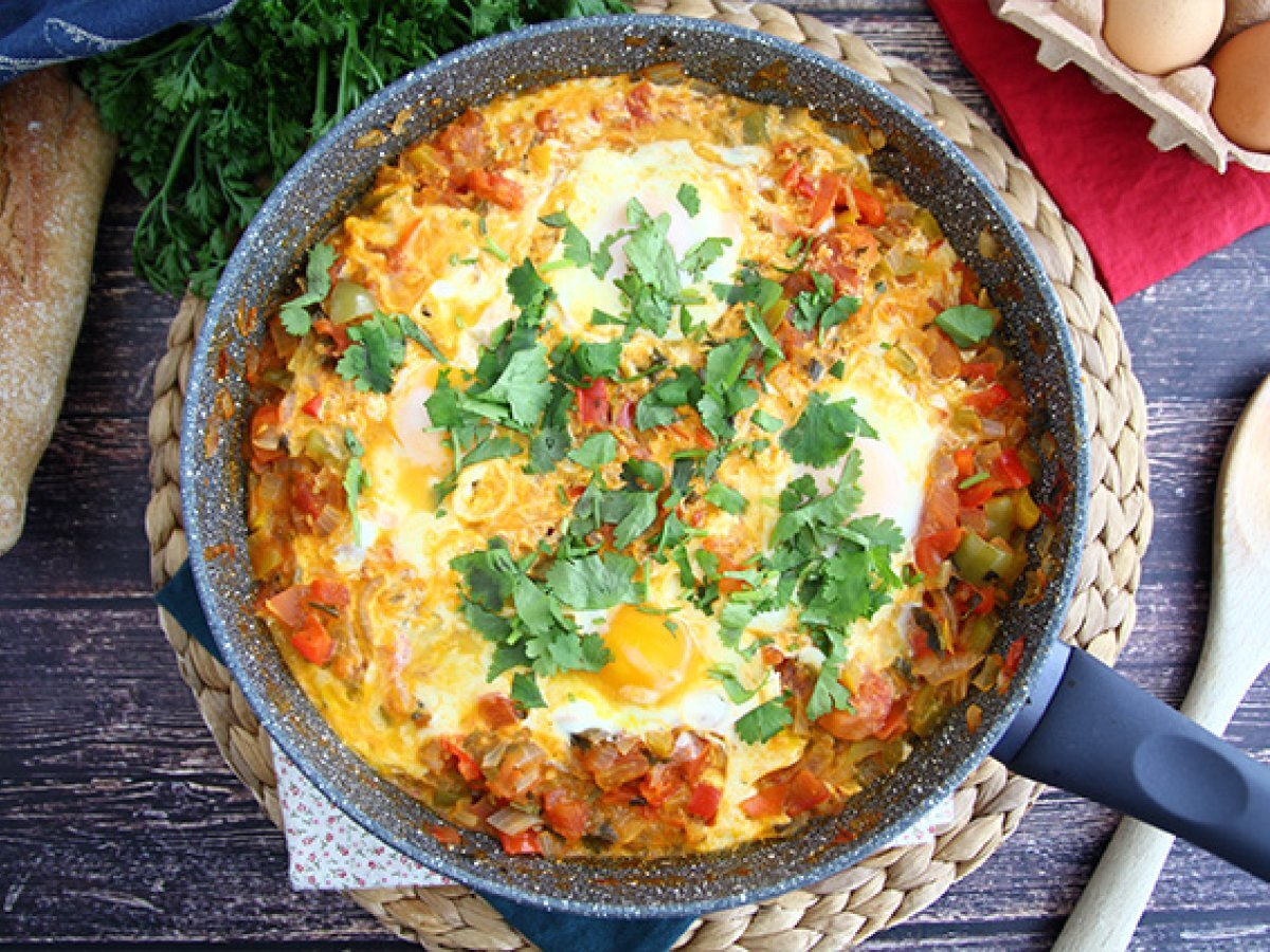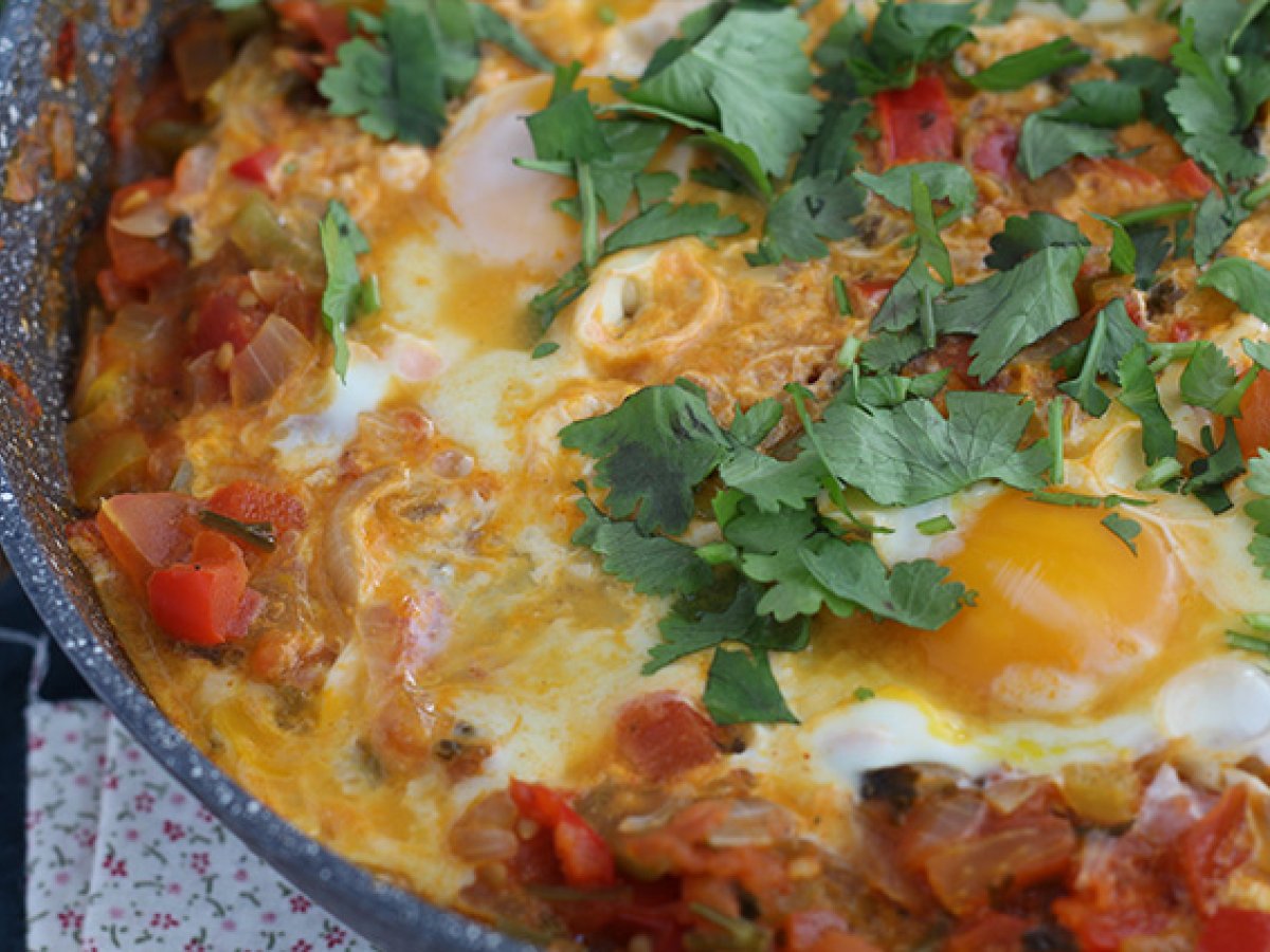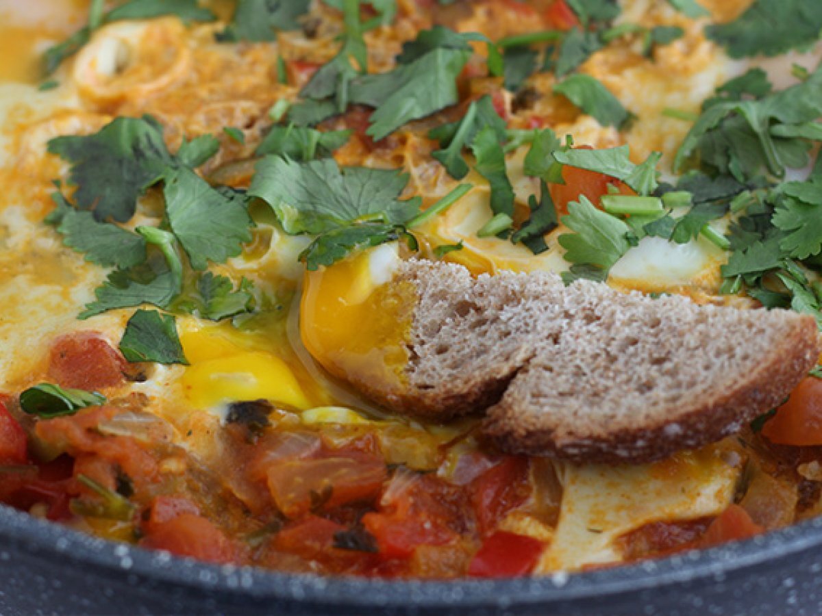 Chakchouka ist ein traditionelles Gericht aus dem Maghreb, das aus einer Mischung von Tomaten, Paprika, Gewürzen und Eiern besteht. Es ist bekannt für seine bunten Aromen und ist ein beliebtes vegetarisches Gericht.