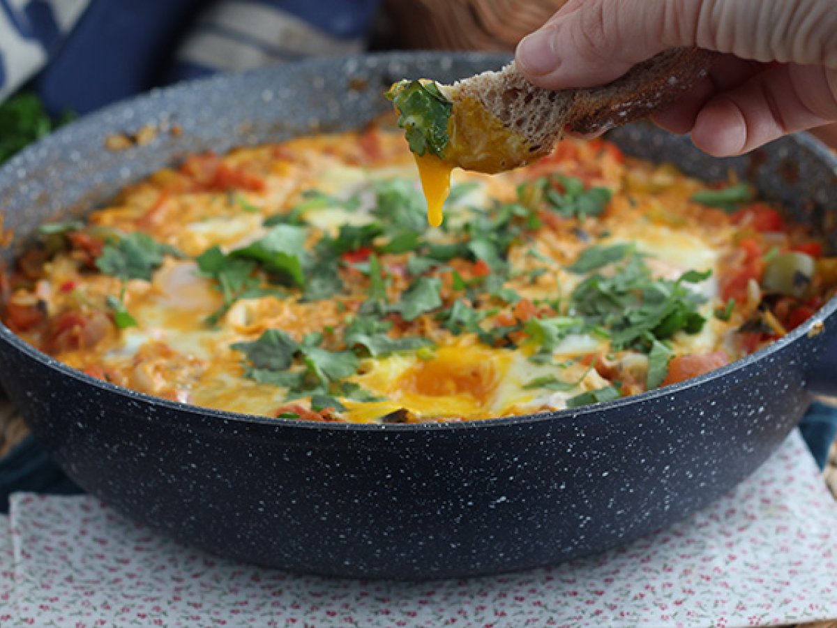 Genießen Sie sonniges Gemüse mit diesem Gericht direkt aus dem Maghreb: Chakchouka! Eine Mischung aus Tomaten, Paprika, Gewürzen und Eiern. Die Gelegenheit, ein vegetarisches Gericht voller Aromen und Farben zu kreieren :-) Ganz einfach, dank unserer schriftlichen Erklärungen/Fotos und unserem Video verpassen Sie nichts!