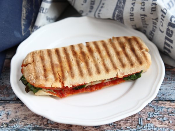 Eine frische Beilage wie einen grünen Salat oder einige Gemüsesticks passt hervorragend zu Ihrem Panini.