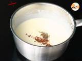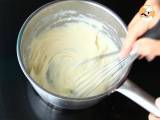 Unter Rühren nach und nach die Milch hinzufügen. Die Béchamelsauce sollte eindicken.