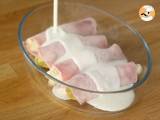 Jede Endivie in einer Schinkenscheibe wälzen und in die Gratinform legen.