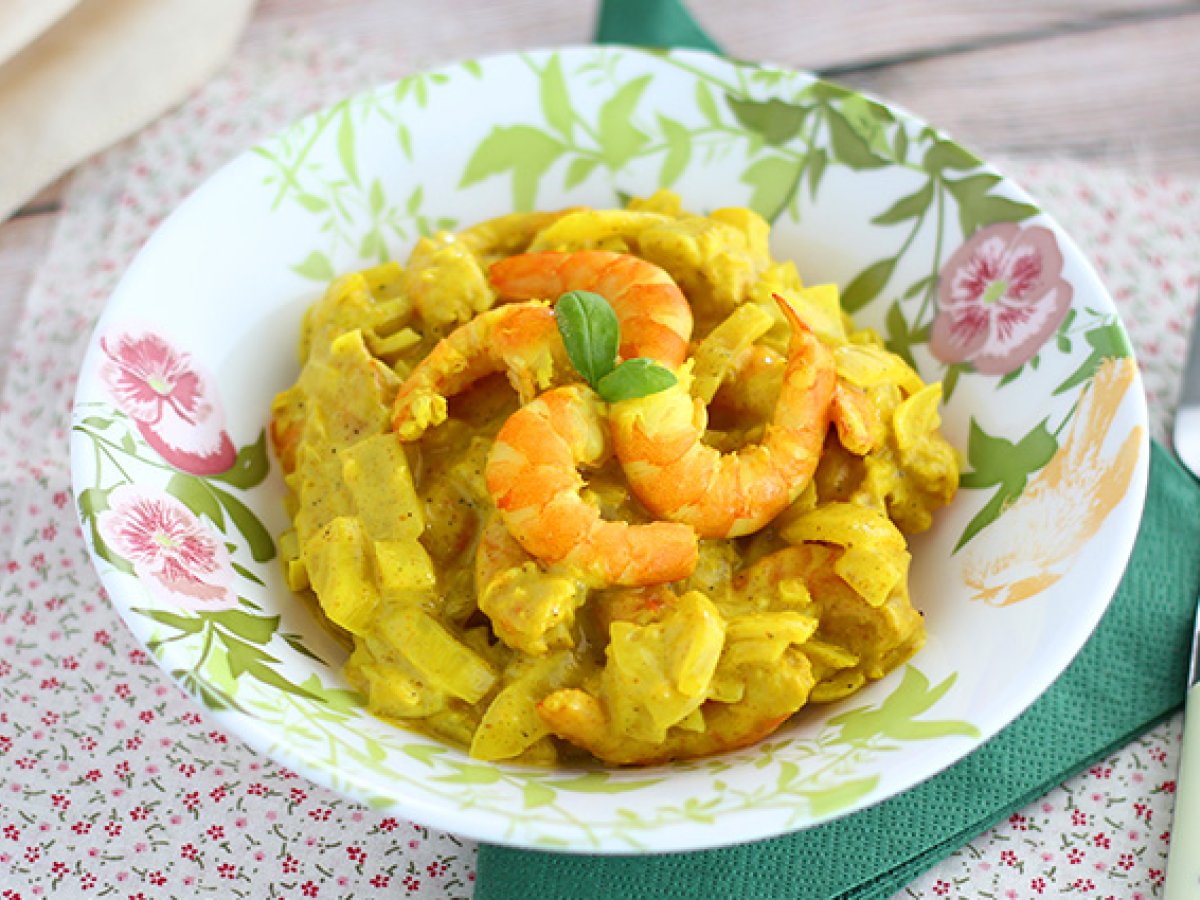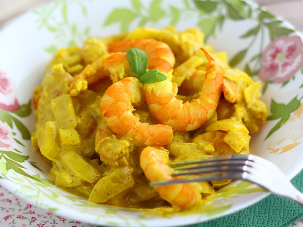 Liebe Liebhaber von süß und salzig, unser Garnelencurry mit Kokosmilch wird Ihre Geschmacksknospen wahrscheinlich umhauen! Dieses schnelle und einfache Rezept ist im Handumdrehen zubereitet und bringt Sonne und exotische Aromen in Ihre Küche! Zögern Sie nicht, Ihren Gästen dieses unwiderstehliche Rezept vorzustellen! Es kann zu jedem Anlass gekocht werden :-) Servieren Sie es mit Reis und Sie haben eine ausgewogene und schmackhafte Mahlzeit :-)