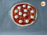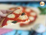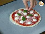 Zum Schluss die Basilikumblätter auf der Pizza verteilen.