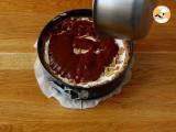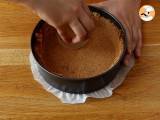 Die Masse in eine mit Backpapier ausgelegte und gefettete Springform füllen. Mit einem Löffel gleichmäßig auf dem Boden der Form und an den Rändern verteilen. Abkühlen lassen (Zeit, den Rest vorzubereiten).