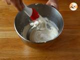 Sahne, Mascarpone, Puderzucker und Vanille verrühren. Den Frischkäse (zimmerwarm) mit einem Teigschaber einarbeiten.