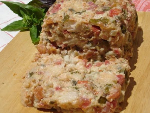 Fischterrine mit tomaten, basilikum und piment d’espelette
