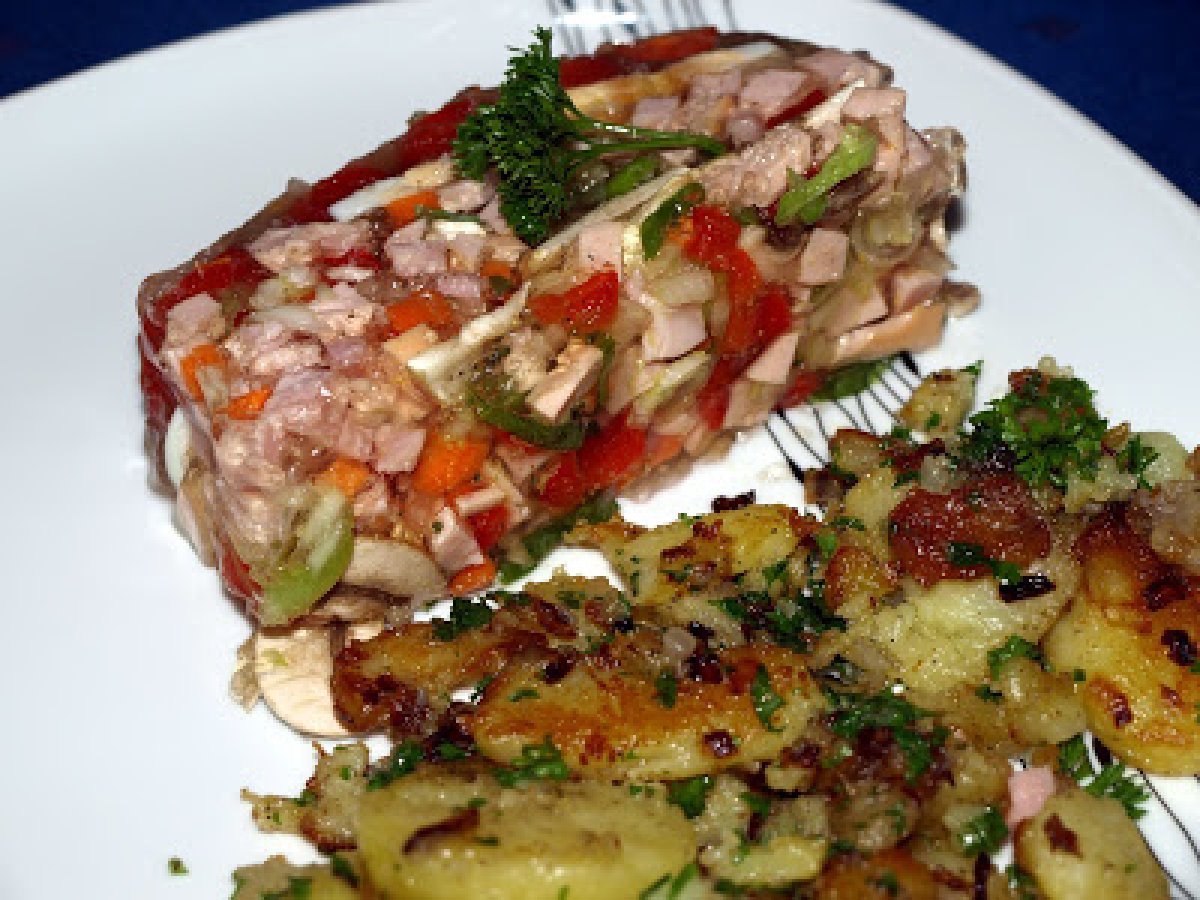 - Die Aspik braucht etwa 4 Stunden im Kühlschrank fest zu werden. Mit Hilfe der Plastikverpackung, können Sie leicht aus der Form zu nehmen.