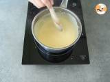 Bereiten Sie die Käsesauce zu: Die Sahne in einem Topf aufkochen, den Emmentaler dazugeben und rühren, bis er geschmolzen ist. Grob gehackten Cheddar und Pfeffer hinzufügen. Die Soße eindicken. Rührgerät.