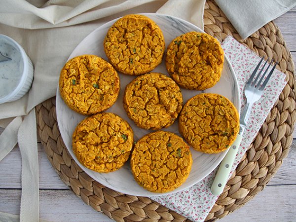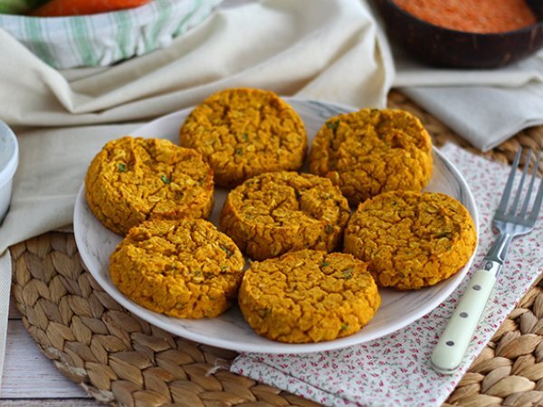 Diese einfach zuzubereitenden Galettes werden aus Korallenlinsen und Karotten hergestellt. Eine gute Möglichkeit, Gemüse und pflanzliche Proteine in Ihre Mahlzeit zu integrieren. Da dieses Rezept von Natur aus glutenfrei ist, eignet es sich auch hervorragend für eine vegetarische/vegane Ernährung.