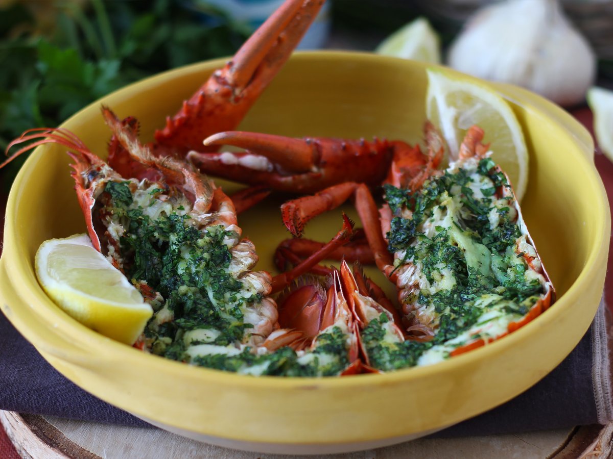 Gebackener Hummer mit Petersilie und Zitrone ist fertig!