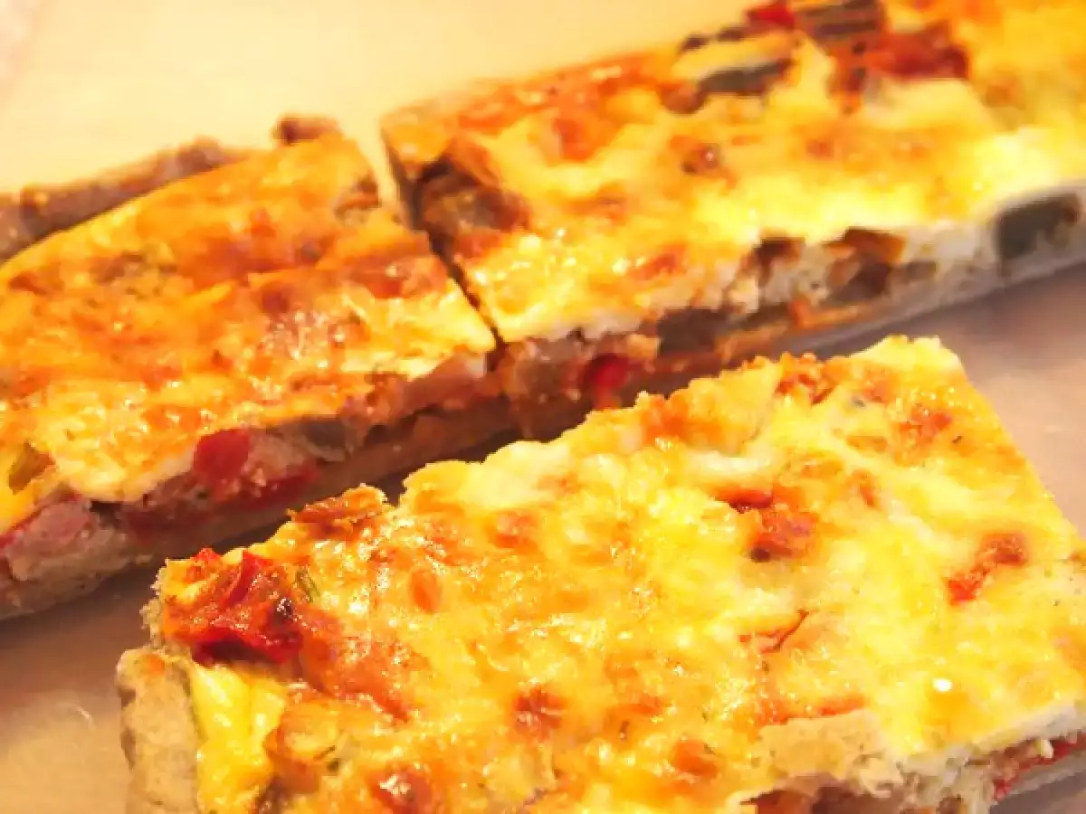 - Vorkochen den Boden für ca. 12 Minuten, streuen Sie mit ein wenig Dijon-Senf und geben Sie das Ratatouille gekochte Mischung. Eine Quiche immer mit Stücken von Chorizo und zwei mit geriebenem Käse bestreuen vorgesehen.