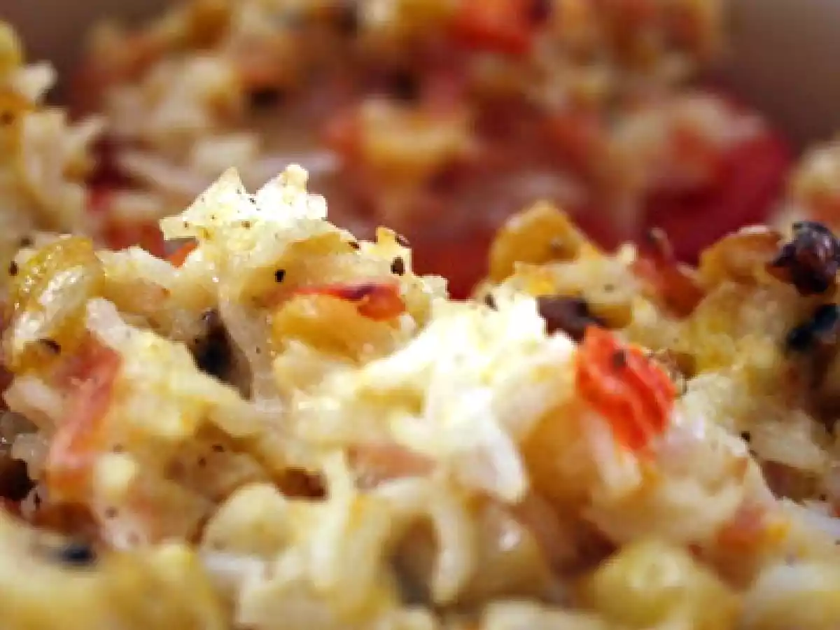 - In eine Auflaufform und geschaffen für 25 Minuten in den Ofen oben drauf.
