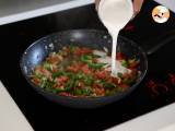 Sie können zum Beispiel Garnelen und Hühnchen kochen und die gleiche Soße verwenden. Sie können Reisnudeln auch einfach kochen und die Sauce darüber gießen, um sie zu verfeinern.