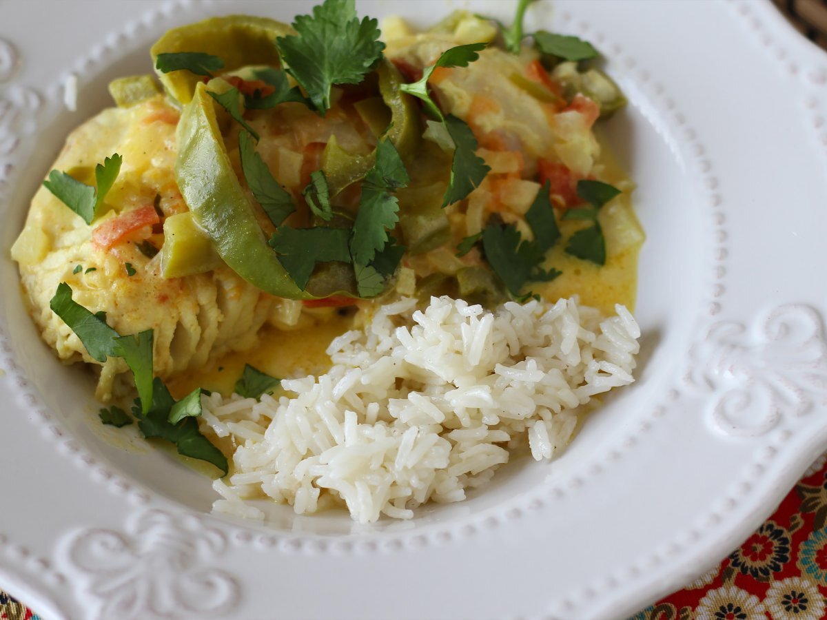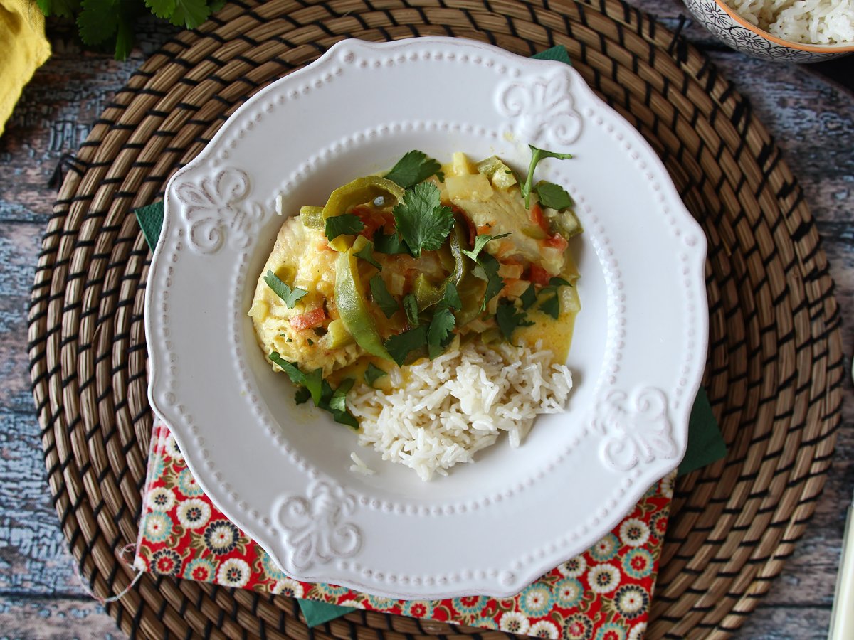 Vergessen Sie nicht, vor dem Servieren die Gewürze abzuschmecken und mit gehacktem Koriander zu bestreuen. Sie können den Fisch mit Reis oder Kartoffeln servieren.