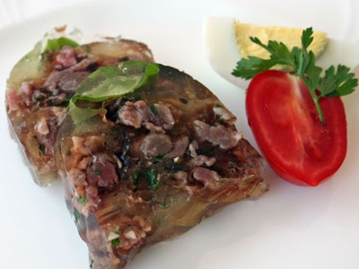 - Fleisch mit Oliven, Kapern, Kräutern, Senf, Meerrettich, Salz und Pfeffer.