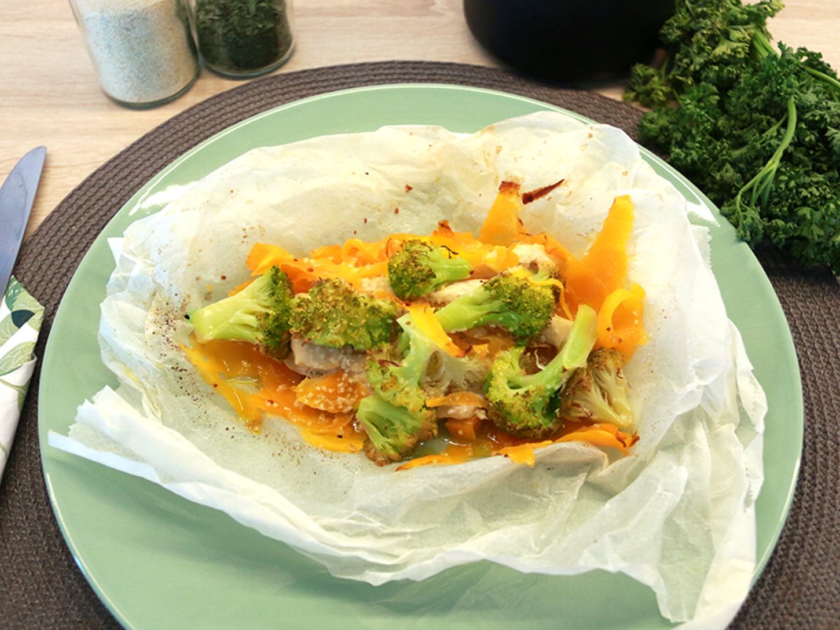Eine gesunde, einfache und schnelle Art der Zubereitung von Speisen ist die Papelote-Technik, bei der alles im Ofen gegart und gedämpft wird. Das heutige Rezept besteht aus Hühnchen, Karotten und Brokkoli, ein ausgewogenes Gericht für die ganze Familie und natürlich, um sich ohne Abstriche fit zu halten. Sehen Sie sich unsere Schritt-für-Schritt-Anleitung unten an: