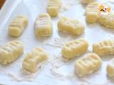 Richten Sie jeden Knödel mit einem leichten Druck mit dem Zeigefinger. Sie können es direkt auf einem Stiel tun, und wenn Sie es nicht haben, können Sie eine Gabel verwenden, um es zu befestigen. Dann legen Sie sie auf eine Platte und lassen Sie sie ruhen fur etwa 20 Minuten