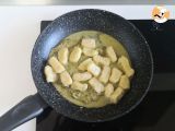 Kochen Sie die Gnocchi im kochendem Wasser und lassen Sie sie anschwellen. übertragen Sie sie in eine Pfanne, wo Sie das Pesto angerichtet haben und vermischen Sie sie.
