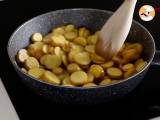 Wir haben uns dafür entschieden, die Kartoffeln in Wasser und Olivenöl zu kochen, aber traditionell werden die Kartoffeln in diesem Gericht gebraten. Sie können Ihre Scheiben daher in Olivenöl oder Sonnenblumenöl garen.