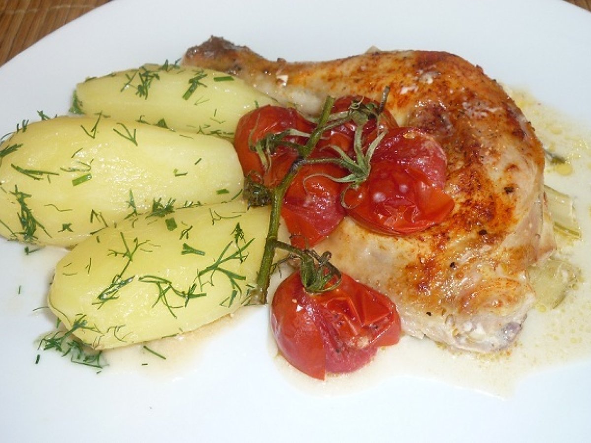 - Nach 30 Minuten ging die Tomaten in den Zwischenräumen gewaschen, drücken eine Zitrone über all und drücken für 15 Minuten in den Ofen.
