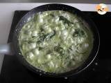 -Mit Salz und Pfeffer würzen. Gießen Sie die Gemüsecreme in die Pfanne und lassen Sie die Soße etwa 10 Minuten einkochen.