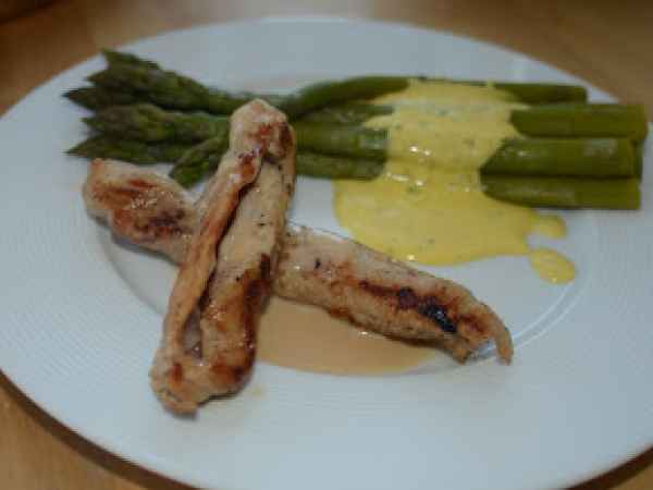 - Die Kalbsschnitzel in gekochtem Schinken belegen.