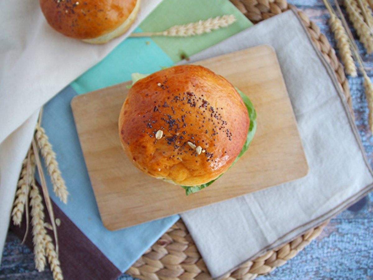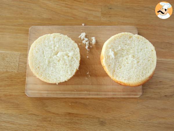 Bereiten Sie die Burgerbrötchen vor (oder verwenden Sie fertige Brötchen). Schneiden Sie einen Laib in zwei Hälften und bräunen Sie die Innenseiten in der Pfanne an, wenn Sie möchten.