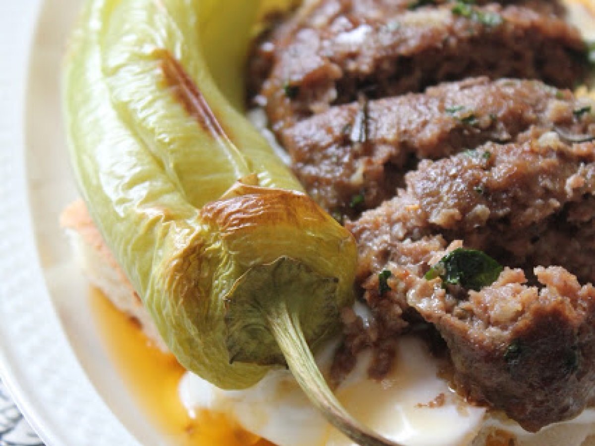 - Teilen Sie die Frikadellen auf Gerichte gekocht, mit gegrilltem Paprika und Tomate schmücken Viertelfinale.