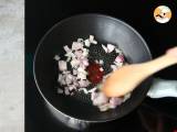 In einer anderen Pfanne die klein geschnittene Schalotte in Butter anbraten.