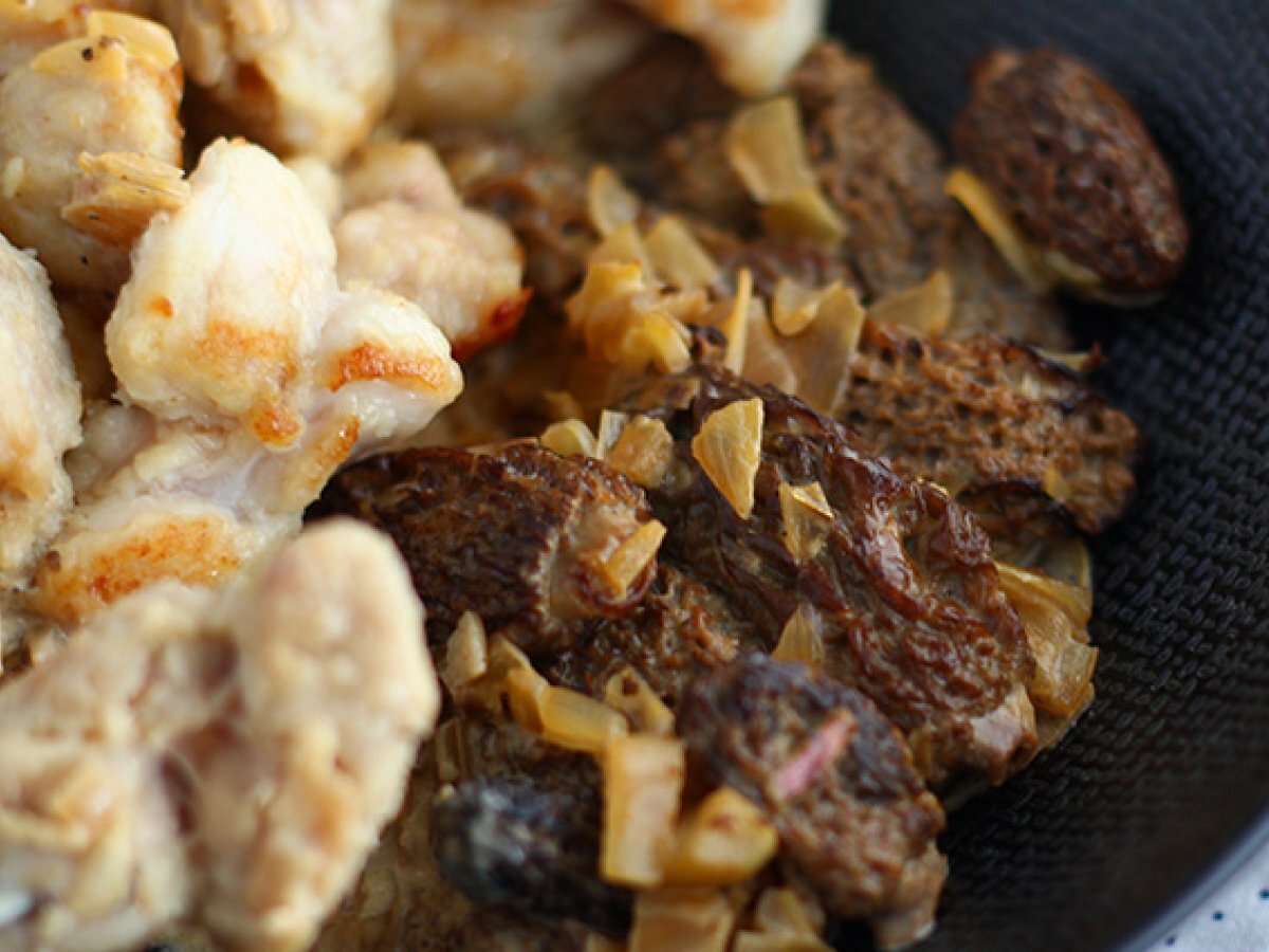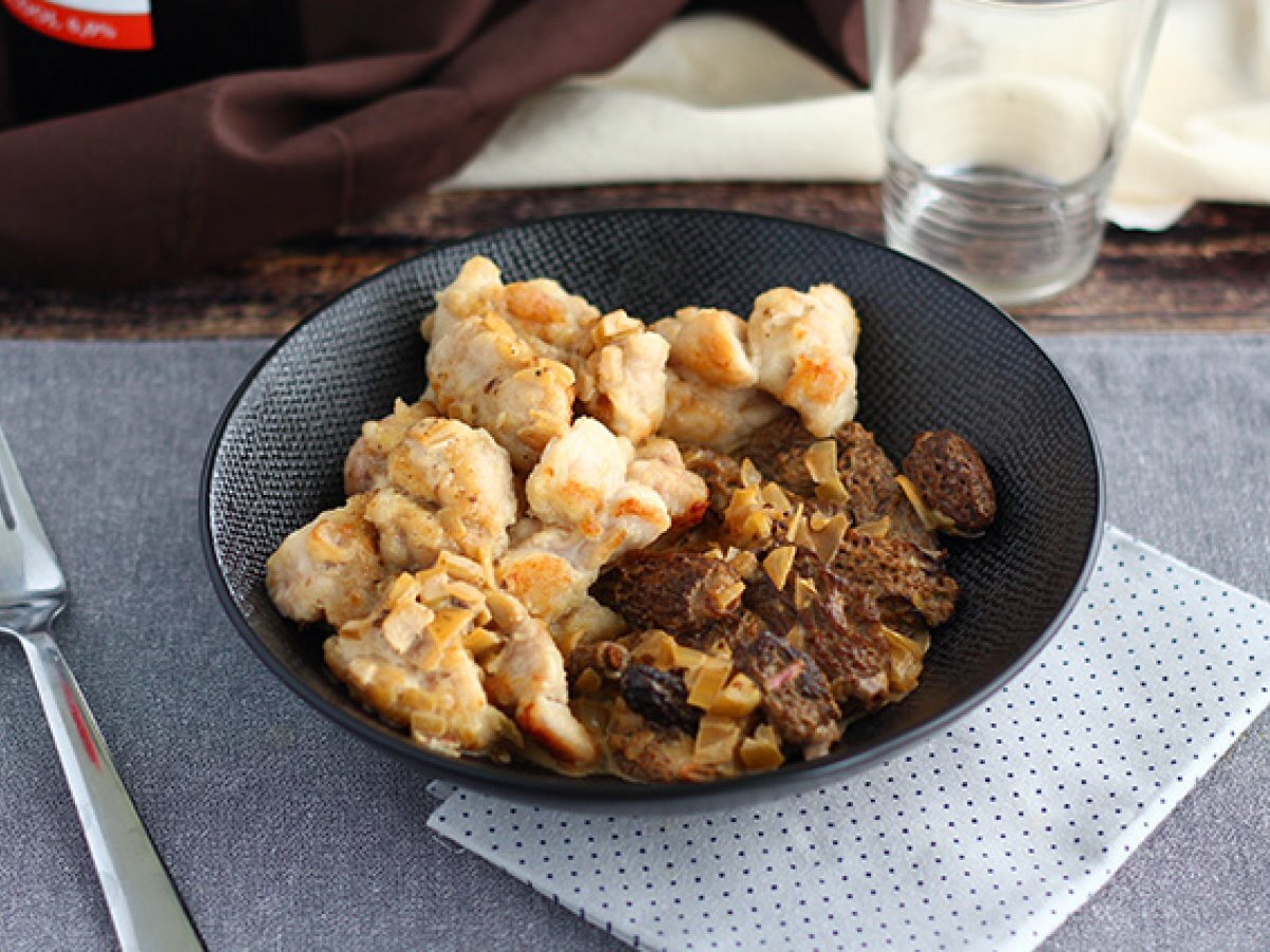 Morcheln sind eine Art von Speisepilzen, die einen nussigen und erdigen Geschmack haben, perfekt für die Kombination mit Sahnesauce.