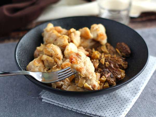 Beilagen wie Kartoffelpüree oder frisches Baguette passen hervorragend zu diesem Gericht, um die köstliche Sahnesauce aufzusaugen.