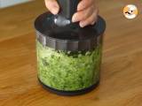 Die Zwiebel, die Knoblauchzehe sowie die gewaschene Petersilie und den Koriander in einen Fleischwolf geben. Fein hacken.