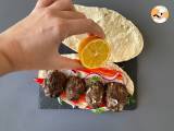 Zum Abschluss wird die Füllung der Köfte Ekmek noch mit der angegrillten Zitrone beträufelt und dann sofort serviert.