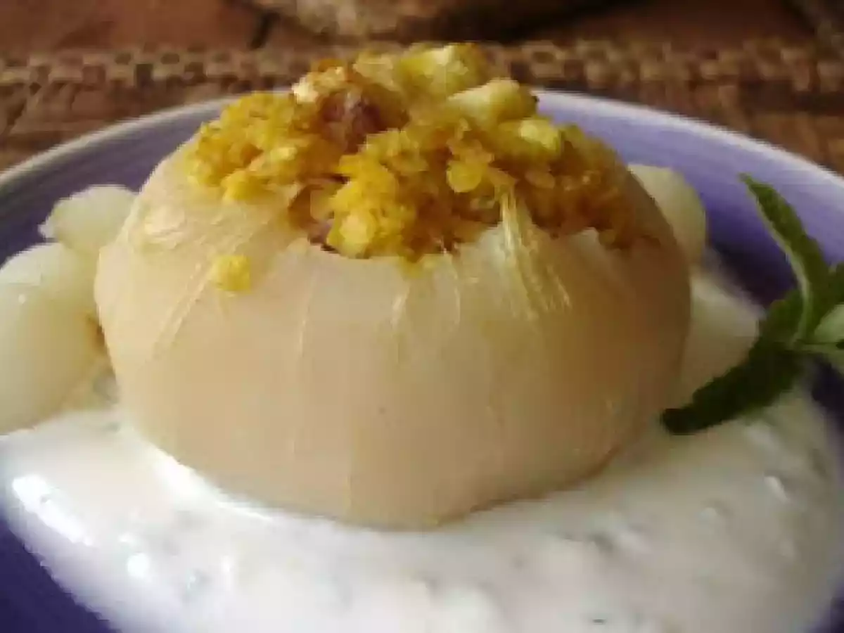 Kohlrabi mit roten linsen gefüllt auf joghurt-minze-sauce