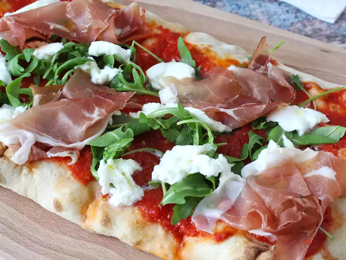 Es ist am besten, die Pinsa sofort nach dem Backen zu essen, um die knusprige Textur und die Frische der Zutaten zu erhalten.