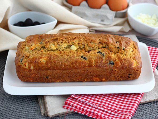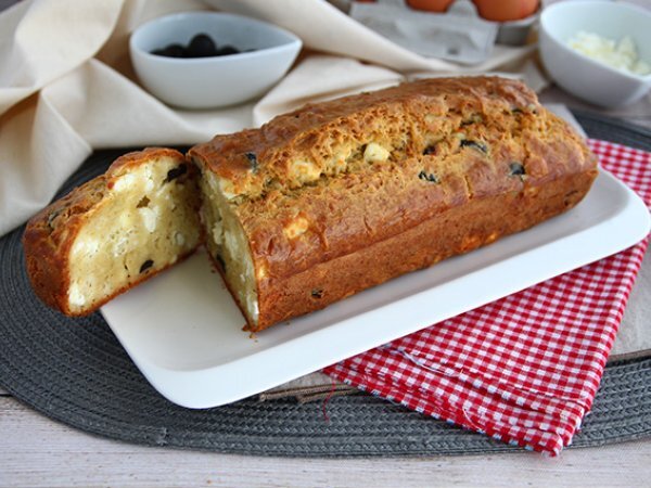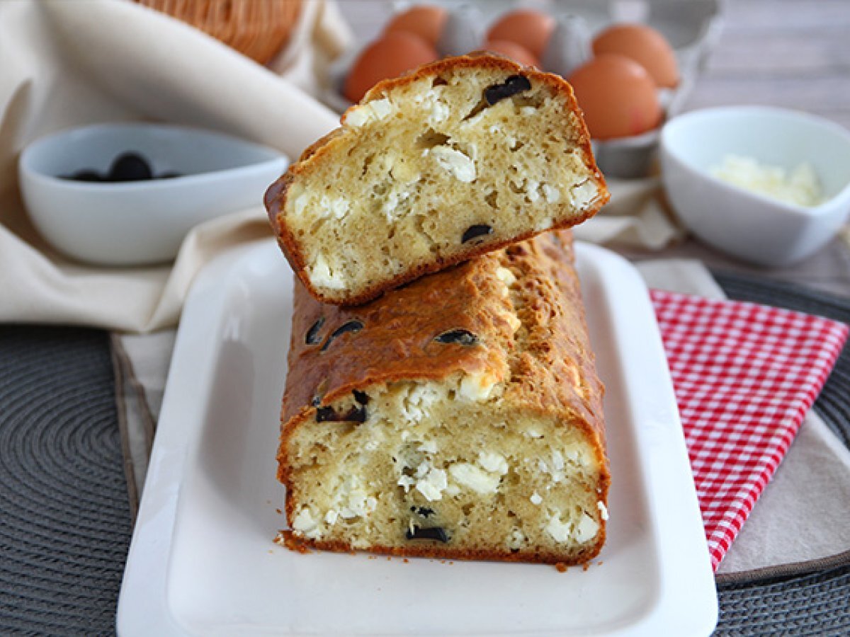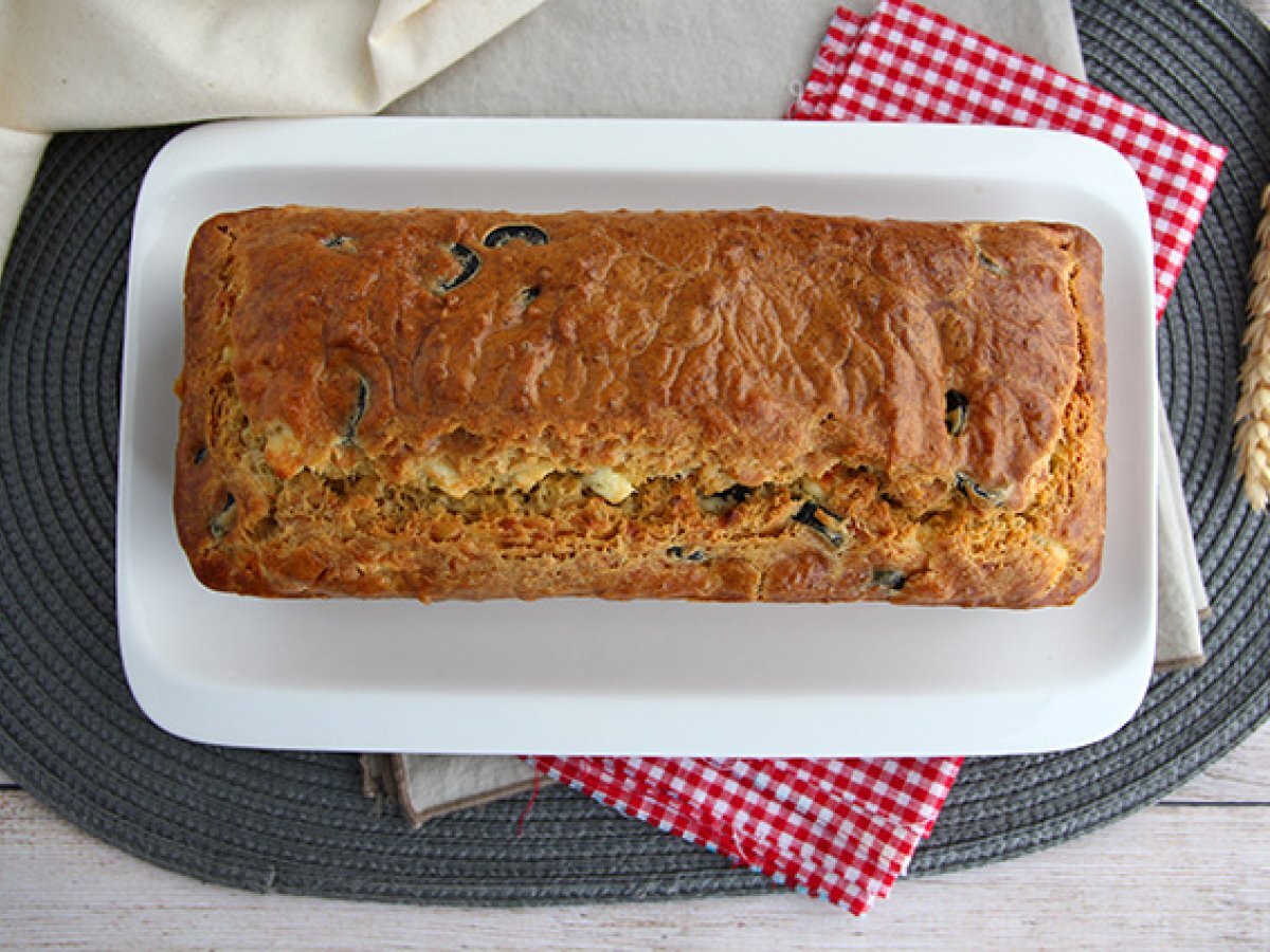 Et voilà, Ihr Oliven- und Feta-Kuchen ist fertig!