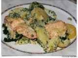 Lachs aus dem backofen mit karden und schwarzbier-apfelsauce