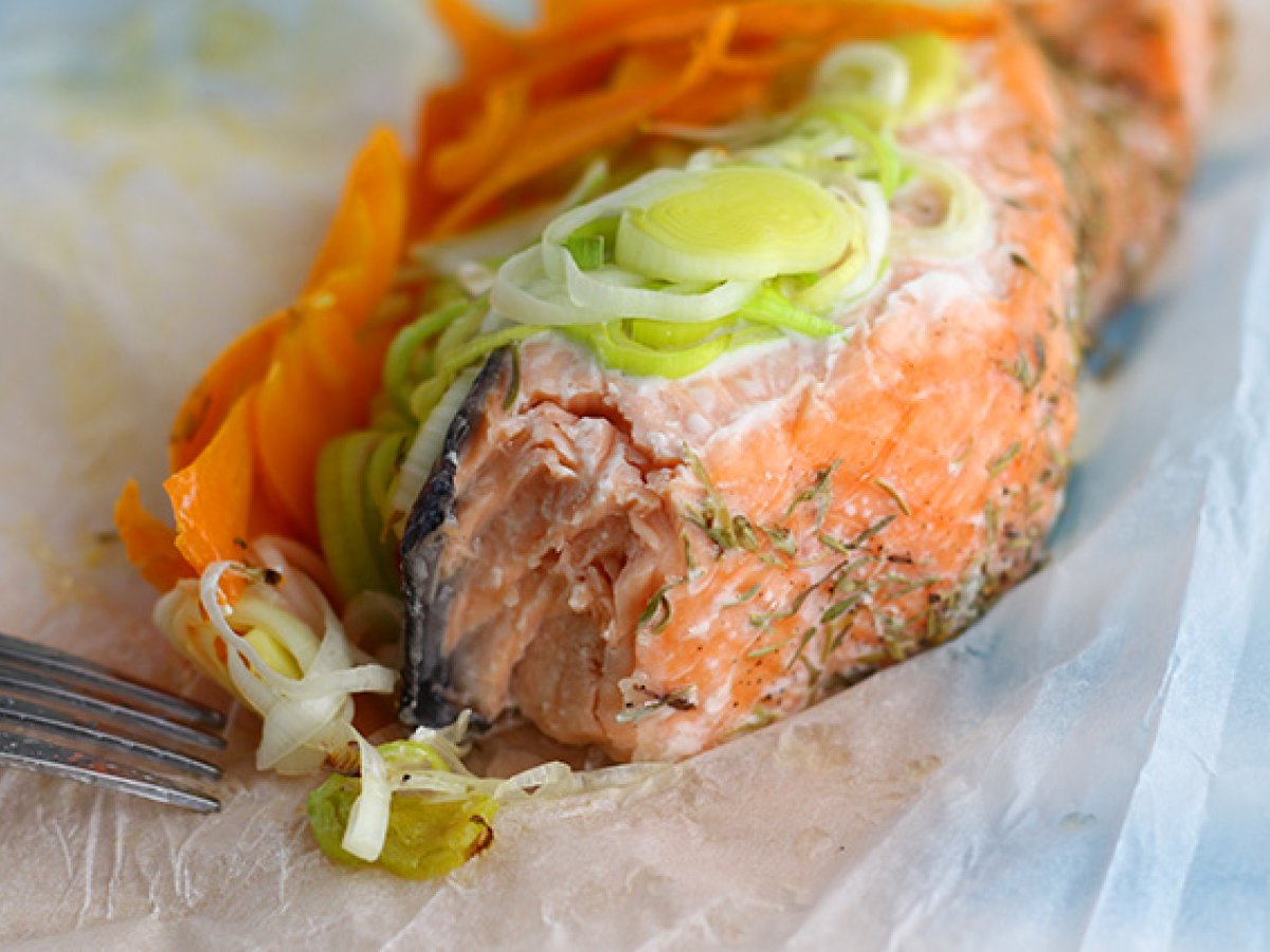 Für eine gesunde, einfache und schnelle Küche gibt es nichts Besseres als das Kochen in der Folie! Heute stellen wir Ihnen ein Rezept für Lachs in Kombination mit Karotten und Lauch vor. Eine unfehlbare Zubereitung dank der schriftlichen Erklärungen und Fotos, alles Schritt für Schritt. Sie erhalten einen zartschmelzenden Fisch, der perfekt gegart ist, und die Aromen des Gemüses werden nur noch vervielfacht. Zögern Sie nicht, den Geschmack zu variieren, indem Sie die Zutaten austauschen und andere Gewürze/Kräuter hinzufügen ;-)