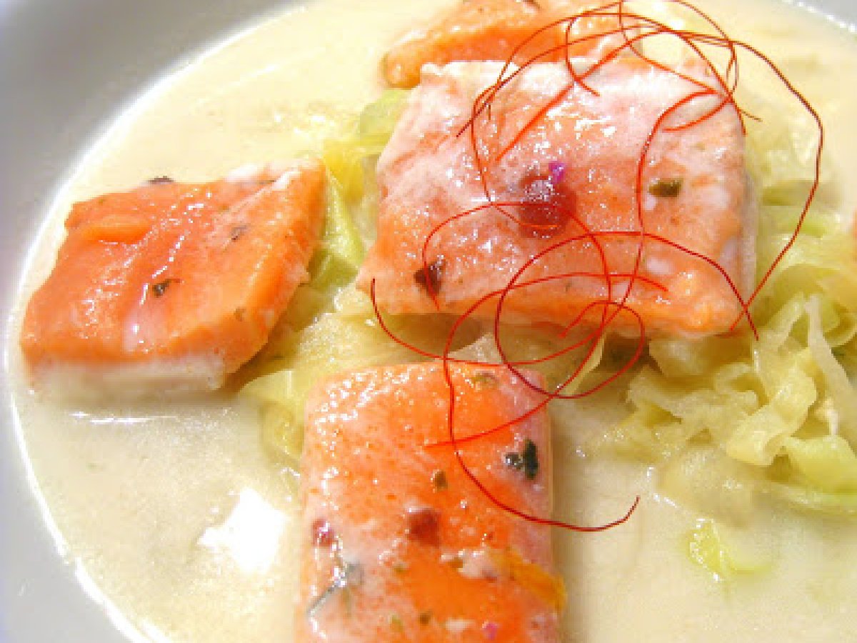 Lachsfilet heiß über kohl grüne currypaste gestreckt mit kokosmilch