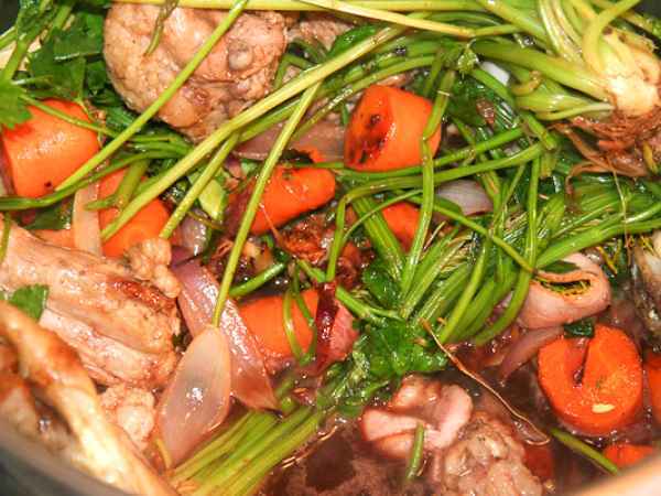 - Gießen Sie 2 Tassen Brühe vom Lamm, Wellengang, reinen Geschmack Petersilie.