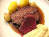Das Fleisch zurück in den Topf geben und bei 180 Grad im Backofen zugedeckt 1,5 Std schmoren lassen. - Nach Garzeit Deckel abnehmen und nochmals 30 Minuten schmoren lassen.