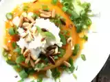 - Zwiebeln schälen, in Ringe schneiden. Öl in einer Pfanne erhitzen. Zwiebelringe in das heiße Fett geben. Knusprig braten. Aufbewahren.