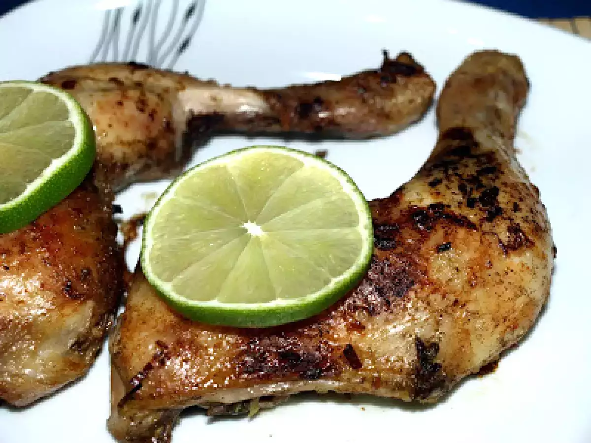 - Hähnchenschenkel sind unter dem Grill volle Breite von etwa 20 Minuten gekocht.