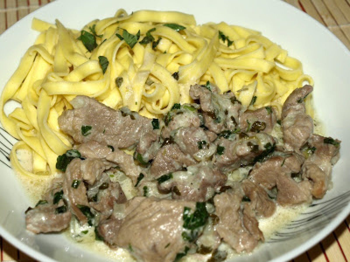 - Das Fleisch in Butter und Zwiebeln kräftig mit ADD.