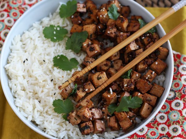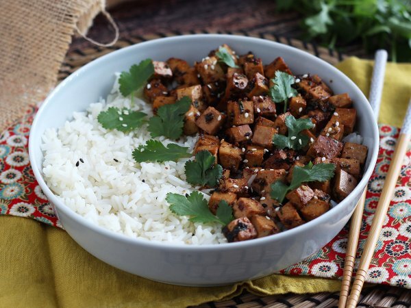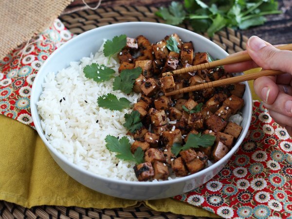 Verleihen Sie Ihrem Naturtofu Aromen und machen Sie ihn sogar knusprig, nachdem Sie ihn in einer Pfanne gebraten haben. Servieren Sie das Ganze mit Reis und Gemüse und schon haben Sie eine aromatische und ausgewogene Mahlzeit ;-) Probieren Sie es aus?