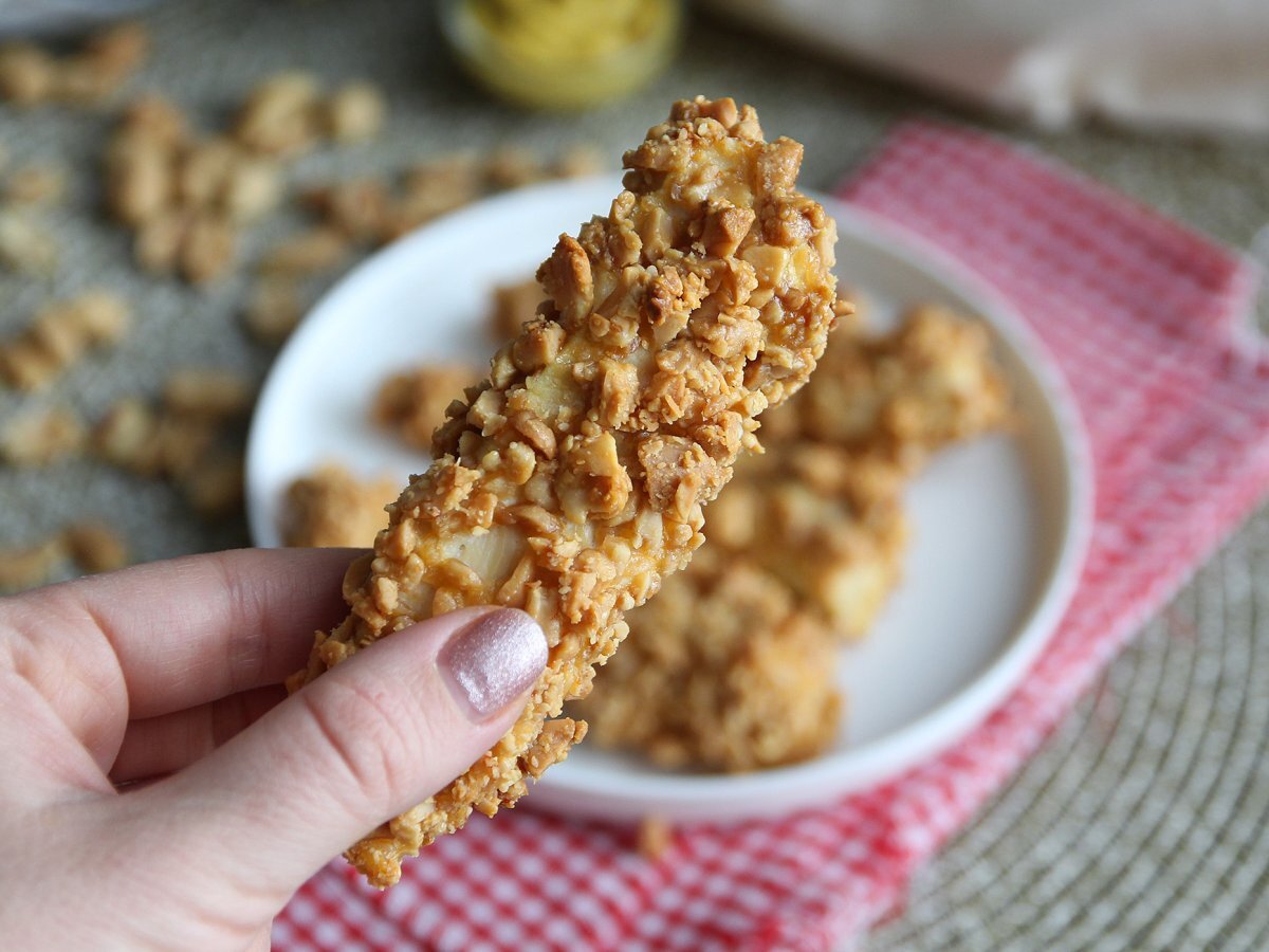 Ersetzen Sie Ihre klassischen Semmelbrösel durch zerstoßene Erdnüsse! Die Möglichkeit, Ihrem gebackenen Hähnchen zusätzliche Aromen zu verleihen (lecker!). Natürlich mit den Fingern abschmecken und mit einer Barbecue-, Senf- oder Ketchup-Sauce servieren für ein 100-prozentiges Geschmackserlebnis ;-) Oh ja, fast hätten wir vergessen, Ihnen zu sagen: Für dieses Rezept benötigen Sie nur 3 Zutaten.