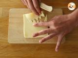 Zähne: Schneiden Sie den Cheddar, um Zähne zu bilden. Behalten Sie beide Seiten.