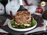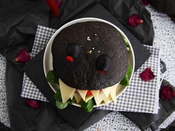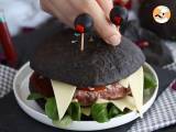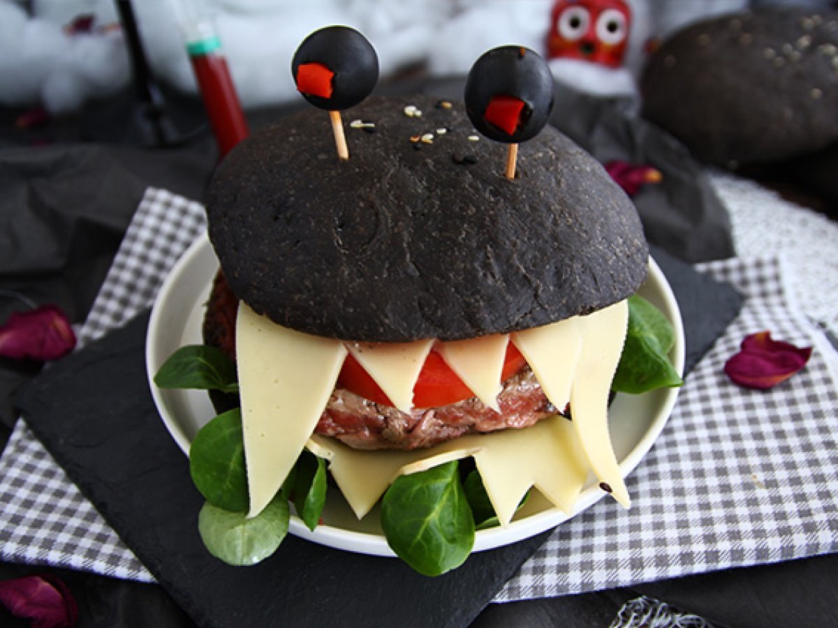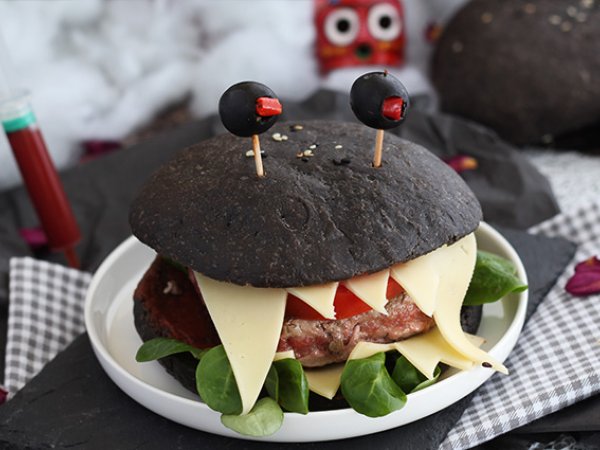 Ein ungeheuer Burger für Ihr Halloween-Mahl! Es ist eine gute Wette, dass die Kinder es lieben werden ;-) Schwarzbrot in Tintenfischfarbe, Augen in Oliven, Zähne in Käse, kurz gesagt! Viel Spaß beim Entdecken Ihrer Mahlzeit für diesen besonderen Abend :-D Befolgen Sie Schritt für Schritt alle Schritte, um unser Monster-Burger durch unsere schriftlichen Erklärungen, Fotos sowie unser Video unten! So entgeht Ihnen kein Schritt ;-)