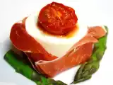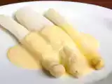 - Avocado in dünne Scheiben schneiden, auf einem Teller verteilen und servieren Spargel auf.
